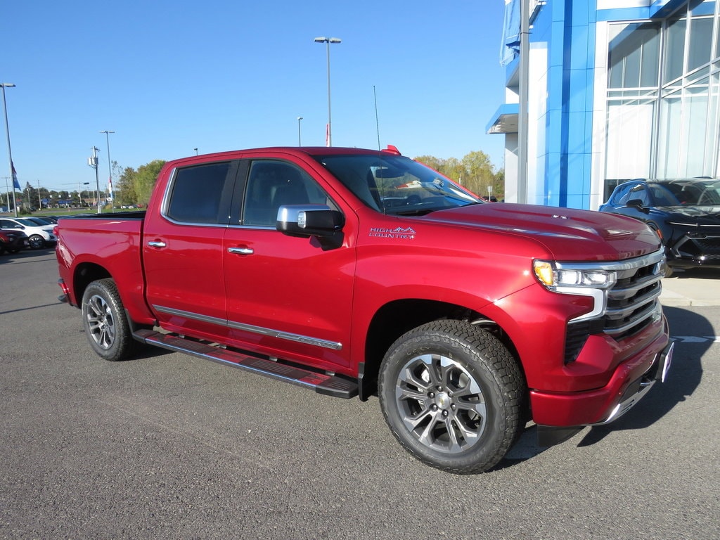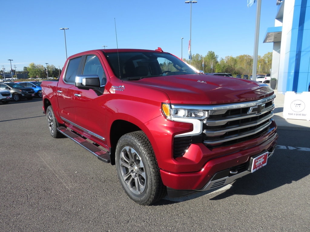 One lot, one family, countless options. Experience the personal touch of a family-owned dealership. 2026 Chevrolet Silverado 1500 Radiant Red Tintcoat 4WD Crew Cab Short Bed High Country EcoTec3 6.2L V8 420hp 460ft. lbs. 15/20 City/Highway MPG 10-Speed Automatic Transmission - Includes Transmission: 10-speed automatic,Overdrive transmission,Lock-up transmission,Transmission electronic control,Transmission Type: Automatic, 170 Amp Alternator, 3.23 Rear Axle Ratio, 6.2L EcoTec3 V8 Engine - Includes Engine Location: Front mounted engine,Fuel Type: Premium Unleaded,Ignition: Spark ignition system,Engine Mounting direction: Longitudinal mounted engine,Engine block material: Aluminum engine block,Cylinder head material: Aluminum cylinder head,Engine: EcoTec3 6.2L V-8 gasoline direct injection, variable valve control, premium unleaded, engine with cylinder deactivation and 420HP,Engine Cylinders: EcoTec3 V8, 7,100 lbs (3,221 Kg) GVWR, Chevrolet Infotainment 3 Premium System Radio - Includes Premium Bose 7-Speaker Sound System,Voice activated audio: Voice activated audio controls,Wireless streaming: Bluetooth wireless audio streaming,Primary display size: 13.4 inch primary display,Primary display touchscreen: Primary monitor touchscreen,Smart device integration: Apple CarPlay/Android Auto smart device wireless mirroring, Dual Active Exhaust - Includes Multi-mode exhaust, Front Black Bowtie Emblem, Front License Plate Kit, High Capacity Suspension Package, Preferred Equipment Group 3LZ - Includes Trailer Side Blind Zone Alert,Chrome Assist Steps,Driver Memory,Perforated Leather Seat Trim,SiriusXM with 360L Trial Subscription,Power Sliding Rear Window with Rear Defogger,Rear window defroster,Rear windshield: Power rear windshield,Safety Alert Seat,Ultrasonic Front and Rear Park Assist,Trailer Camera Provisions,Electric Rear-Window Defogger,Theft Deterrent System (unauthorized Entry),20" X 9" Painted Aluminum Wheels,Front Rain-Sensing Wipers,Heated Steering Wheel,120-Volt Interior Power Outlet,120-Volt Bed Mounted Power Outlet,Heated Driver and Front Outboard Passenger Seats,Front Bucket Seats,Electronic Transmission Range Selector Shifter,Split front seats: Bucket front seats,Floor console: Full floor console,Color-Keyed Carpeting Floor Covering,Floor covering: Full carpet floor covering,Floor coverage: Full floor coverage,OnStar Services Capable,Wi-Fi Hot Spot Capable,Emergency SOS Capable: OnStar vehicle integrated emergency SOS system,Vehicle tracker: Stolen Vehicle Assistance vehicle tracker with vehicle slowdown,2nd Row Heated Outboard Seats,Power Front Passenger Windows with Express Up/down,First-row windows: Power first-row windows,One-touch down window: Front and rear one-touch down windows,One-touch up window: Driver and passenger one-touch up windows,Front Carpeted Floor Mats,Rear Carpeted Floor Mats,12.3" Multicolor Reconfigurable Digital Display,Configurable instrumentation gauges,Gauge cluster display size (inches): Gauge cluster display size: 12.30,Galvano Silver Painted Mirror Caps,Power Rear Windows with Express Down,Second-row windows: Power second-row windows,Integrated Trailer Brake Controller,HD Surround Vision,Front camera: Front mounted camera,Right camera: Right side camera,Left camera: Left side camera,Rear camera: HD Rear Vision Camera w/Hitch View rear mounted camera,Camera: HD Surround Vision aerial view camera,Ventilated Driver and Front Passenger Seats,Power Tilt and Telescoping Steering Column,Steering wheel tilt: Power tilting steering wheel,Steering wheel telescopic: Power telescopic steering wheel,275/60R20SL AT BW Tires,Tires: P275/60SR20 AT BSW front and rear tires,Keyless Open and Start,Perimeter Lighting,Auto-Dimming Inside Rearview Mirror,LED Cargo Area Lighting,Bluetooth For Phone,Remote Vehicle Starter System,In-Vehicle Trailering System App,Vehicle and trailer reverse assist: Rear Trailer Guidance Lines vehicle and trailer reverse assist with vis