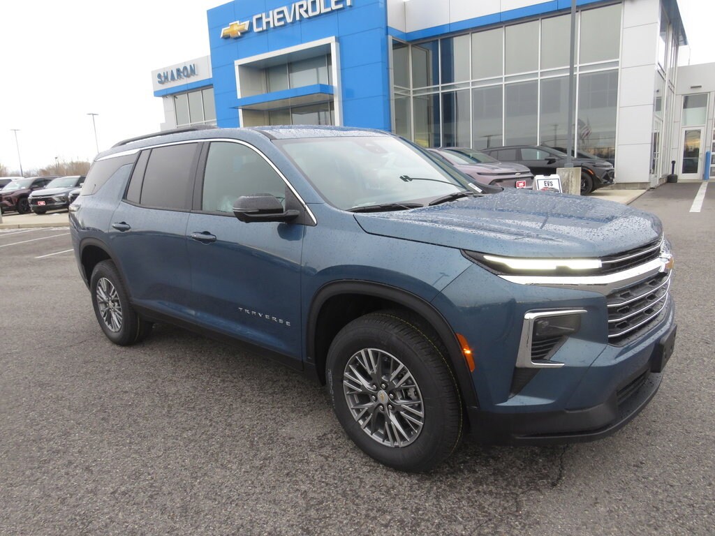 One lot, one family, countless options. Experience the personal touch of a family-owned dealership. 2026 Chevrolet Traverse Lakeshore Blue Metallic AWD LT 2.5L Turbo I4 328hp 326ft. lbs. 20/24 City/Highway MPG 18" Grazen Metallic Machined-Face Aluminum Wheels, 2.5L DOHC SIDI Engine with Variable Valve Timing - Includes Engine Location: Front mounted engine,Fuel Type: Regular unleaded,Ignition: Spark ignition system,Engine Mounting direction: Transverse mounted engine,Engine block material: Aluminum engine block,Cylinder head material: Aluminum cylinder head,Engine: 2.5L I-4 gasoline direct injection, DOHC, variable valve control, intercooled turbo, regular unleaded, engine with 328HP,Engine Short: 2.5L I-4 DOHC,Engine Configuration: I4,Compressor: Intercooled turbo, 255/65R18 AS BW Tires - Includes Tires: P255/65SR18 AS BSW front and rear tires, 4-Way Manual Front Passenger Seat Adjuster - Includes Passenger seat direction: Front passenger seat with 4-way directional controls,Manual passenger seat controls: Passenger seat manual reclining and fore/aft control, 6,394 lbs (2,900 Kg) GVWR, 8-Speed Automatic Transmission - Includes Transmission: 8-speed automatic,Overdrive transmission,Lock-up transmission,Transmission electronic control,Transmission Type: Automatic, 8-Way Power Driver Seat Adjuster - Includes Driver seat direction: Driver seat with 8-way directional controls,Power driver seat controls: Driver seat power reclining, cushion tilt, fore/aft control and height adjustable control, Driver Confidence Package - Includes HD Surround Vision,Front camera: Front mounted camera,Right camera: Right side camera,Left camera: Left side camera,Rear camera: HD Rear Vision Camera rear camera with washer,Camera: HD Surround Vision aerial view camera,Rear Pedestrian Alert,Traffic Sign Recognition,Key Card,Power Outlet,Interior 120V AC power outlets: 1 interior 120V AC power outlet,Onboard power supply (kW): 0.150 kW,Rear Camera Mirror,Rearview mirror: Auto-dimming rear view mirror,Video rearview mirror: Rear Camera Mirror video-feed rearview mirror, Floor Liner Package - Includes Integrated Cargo Liner,3rd Row All-Weather Floor Liner,1st and 2nd Row All-Weather Floor Liners, Front Bucket Seats - Includes Heated Driver and Front Passenger Seats, Front License Plate Mounting Package, Preferred Equipment Group 2LT, Radio: Audio System W/17.7" Diagonal Display - Includes 6-Speaker Audio System Feature,SiriusXM with 360L Trial Subscription,Satellite trial: 3 month satellite trial subscription,Radio: AM/FM/SiriusXM with 360Lsatellite,External memory: External memory control,Wireless streaming: Bluetooth wireless audio streaming,Primary display size: 17.7 inch primary display,Primary display touchscreen: Primary monitor touchscreen,Handsfree: Bluetooth handsfree wireless device connectivity,Smart device integration: Apple CarPlay/Android Auto smart device wireless mirroring, State-Specific Emissions Requirements