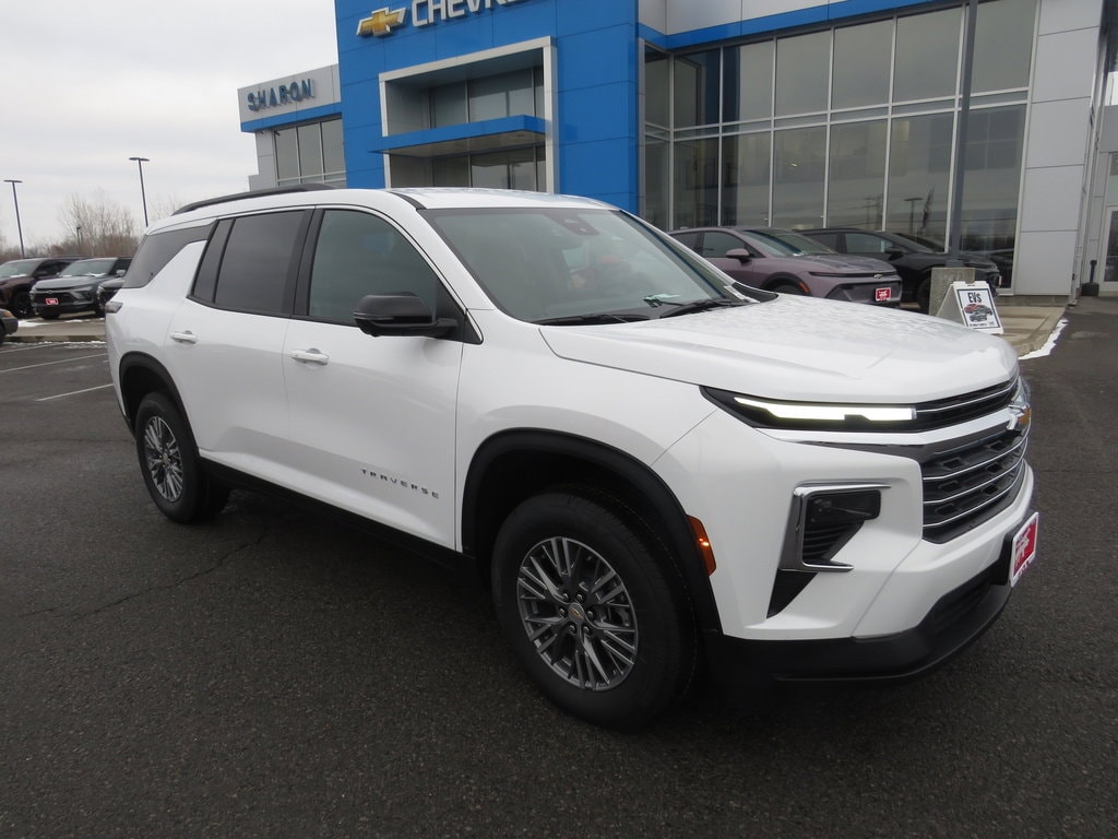 One lot, one family, countless options. Experience the personal touch of a family-owned dealership. 2026 Chevrolet Traverse Summit White AWD LT 2.5L Turbo I4 328hp 326ft. lbs. 20/24 City/Highway MPG 18" Grazen Metallic Machined-Face Aluminum Wheels, 2.5L DOHC SIDI Engine with Variable Valve Timing - Includes Engine Location: Front mounted engine,Fuel Type: Regular unleaded,Ignition: Spark ignition system,Engine Mounting direction: Transverse mounted engine,Engine block material: Aluminum engine block,Cylinder head material: Aluminum cylinder head,Engine: 2.5L I-4 gasoline direct injection, DOHC, variable valve control, intercooled turbo, regular unleaded, engine with 328HP,Engine Short: 2.5L I-4 DOHC,Engine Configuration: I4,Compressor: Intercooled turbo, 255/65R18 AS BW Tires - Includes Tires: P255/65SR18 AS BSW front and rear tires, 4-Way Manual Front Passenger Seat Adjuster - Includes Passenger seat direction: Front passenger seat with 4-way directional controls,Manual passenger seat controls: Passenger seat manual reclining and fore/aft control, 6,394 lbs (2,900 Kg) GVWR, 8-Speed Automatic Transmission - Includes Transmission: 8-speed automatic,Overdrive transmission,Lock-up transmission,Transmission electronic control,Transmission Type: Automatic, 8-Way Power Driver Seat Adjuster - Includes Driver seat direction: Driver seat with 8-way directional controls,Power driver seat controls: Driver seat power reclining, cushion tilt, fore/aft control and height adjustable control, Driver Confidence Package - Includes HD Surround Vision,Front camera: Front mounted camera,Right camera: Right side camera,Left camera: Left side camera,Rear camera: HD Rear Vision Camera rear camera with washer,Camera: HD Surround Vision aerial view camera,Rear Pedestrian Alert,Traffic Sign Recognition,Key Card,Power Outlet,Interior 120V AC power outlets: 1 interior 120V AC power outlet,Onboard power supply (kW): 0.150 kW,Rear Camera Mirror,Rearview mirror: Auto-dimming rear view mirror,Video rearview mirror: Rear Camera Mirror video-feed rearview mirror, Floor Liner Package - Includes Integrated Cargo Liner,3rd Row All-Weather Floor Liner,1st and 2nd Row All-Weather Floor Liners, Front Bucket Seats - Includes Heated Driver and Front Passenger Seats, Front License Plate Mounting Package, Preferred Equipment Group 2LT, Radio: Audio System W/17.7" Diagonal Display - Includes 6-Speaker Audio System Feature,SiriusXM with 360L Trial Subscription,Satellite trial: 3 month satellite trial subscription,Radio: AM/FM/SiriusXM with 360Lsatellite,External memory: External memory control,Wireless streaming: Bluetooth wireless audio streaming,Primary display size: 17.7 inch primary display,Primary display touchscreen: Primary monitor touchscreen,Handsfree: Bluetooth handsfree wireless device connectivity,Smart device integration: Apple CarPlay/Android Auto smart device wireless mirroring, State-Specific Emissions Requirements