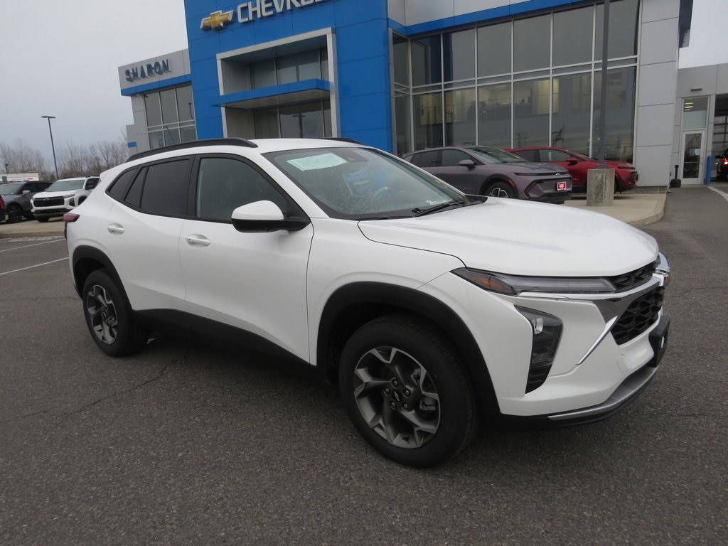 One lot, one family, countless options. Experience the personal touch of a family-owned dealership. 2026 Chevrolet Trax Summit White FWD LT ECOTEC 1.2L Flex Fuel Turbo I3 137hp 162ft. lbs. 28/32 City/Highway MPG 17 Inch Gray-Painted Machined Aluminum Alloy Wheels, 225/60R17 All-Season BW Tires - Includes Tires: P225/60HR17 AS BSW front and rear tires, 3.50 Final Drive Axle Ratio, 4,145 lbs (1,880 Kgs) GVWR, 6-Speed Automatic Transmission - Includes Transmission: 6-speed automatic,Overdrive transmission,Lock-up transmission,Transmission electronic control,Transmission Type: Automatic, 6-Way Manual Driver Seat Adjuster, AM/FM Stereo Audio System - Includes 6-Speaker Audio System Feature,Wireless Apple CarPlay/wireless Android Auto,SiriusXM Trial Subscription,Satellite trial: 3 month satellite trial subscription,Radio: AM/FM/digital/SiriusXMsatellite,External memory: Chevrolet Infotainment 3 external memory control,Voice activated audio: Voice activated audio controls,Wireless streaming: Bluetooth wireless audio streaming,Primary display size: 11 inch primary display,Primary display touchscreen: Primary monitor touchscreen,Emergency SOS Capable: OnStar One Essentials vehicle integrated emergency SOS system, Driver Confidence Package - Includes Rear Cross Traffic Alert,Rear Park Assist,Lane Change Alert with Side Blind Zone Alert,Lane departure: Lane Keep Assist with Lane Departure Warning,Blind spot: Lane Change Alert with Side Blind Zone Alert blind spot warning,Adaptive Cruise Control,Cruise control: Cruise control with steering wheel mounted controls,Adaptive cruise control: Adaptive Cruise Control, ECOTEC 1.2L Turbo DOHC DI Engine with Variable Valve Timing - Includes Engine Location: Front mounted engine,Fuel Type: Regular unleaded,Ignition: Spark ignition system,Engine Mounting direction: Transverse mounted engine,Engine block material: Aluminum engine block,Cylinder head material: Aluminum cylinder head,Engine: ECOTEC 1.2L I-3 gasoline direct injection, DOHC, variable valve control, intercooled turbo, regular unleaded, engine with 137HP,Engine Short: ECOTEC 1.2L I-3 DOHC,Engine Configuration: ECOTEC I3,Compressor: Intercooled turbo, Front Bucket Seats - Includes 2-Way Adjustable Front Head Restraints,Front head restraints: Height adjustable front seat head restraints,Front head restraint control: Manual front seat head restraint control,4-Way Manual Front Passenger Seat Adjuster, License Plate Front Mounting Package, LT Convenience Package - Includes Heated Steering Wheel,Front Doors Keyless Open,Fob engine controls: Keyless Open/Keyless Start with hands-free access and push button start,Remote panic alarm,Ignition type: Push-button,Heated Driver and Front Passenger Seats,Wrapped Steering Wheel,Heated Power-Adjustable Outside Mirrors,Door mirrors: Power door mirrors,Heated door mirrors: Heated driver and passenger side door mirrors,Folding door mirrors: Manual folding door mirrors, Preferred Equipment Group 1LT, State-Specific Emissions Requirements - Includes Emissions: LEV3-ULEV70 emissions,Emissions tiers: Tier 3 Bin 70 emissions