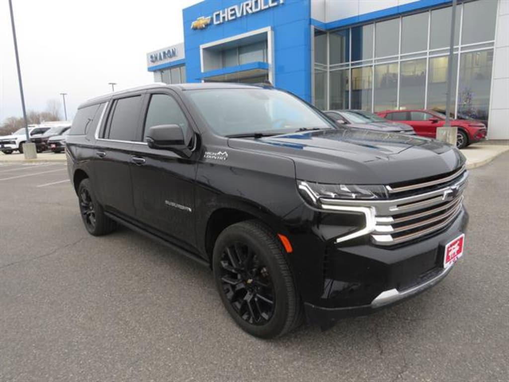 One lot, one family, countless options. Experience the personal touch of a family-owned dealership. 2023 Chevrolet Suburban High Country Black EcoTec3 6.2L V8 420hp 460ft. lbs. 22 in. Multi-Spoke Gloss Black Wheels, Adaptive Cruise Control, Black Bowtie Package, Dual Exhaust with Polished Outlets, License Plate Front Mounting Package, Max Trailering Package, Northeast Emissions Requirements, Power Panoramic Moonroof, Power Retractable Assist Steps, Premium Package, Wireless Charger