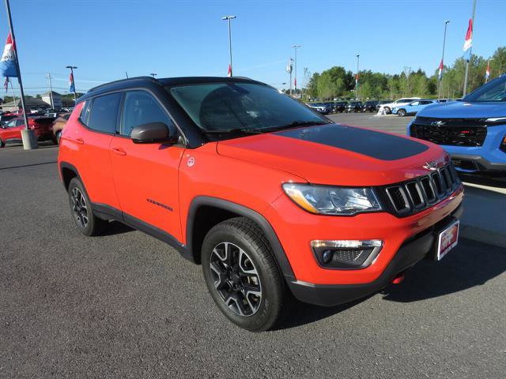 One lot, one family, countless options. Experience the personal touch of a family-owned dealership. Clean CARFAX 2019 Jeep Compass Trailhawk Spitfire Orange Clear Coat Tigershark 2.4L I4 180hp 175ft. lbs. California Emissions, Full Sunroof, Leather Interior Group, Leather with Perforated Insert Bucket Seats, Power Liftgate, Quick Order Package 27E, Safety and Security Group, Tigershark 2.4L I4 180hp 175ft. lbs. PZEV, UConnect 4C Nav with 8.4 In. Display